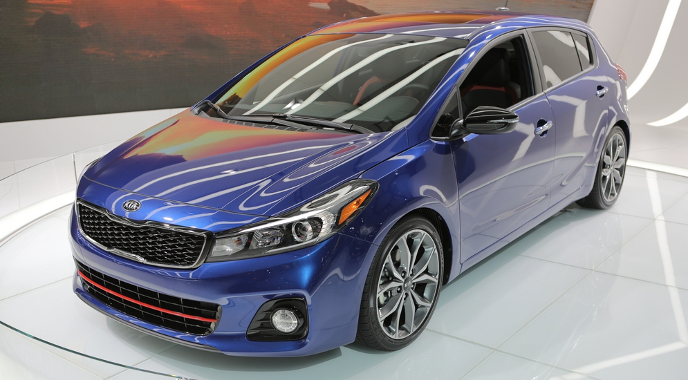 Рядом скромно расположился обновленный Kia Forte, который у нас зовется Cerato. Изменению подверглась передняя часть, которая стала более «интернациональной», задние фонари, руль и элементы интерьера, включая новую мультимедиасистему.