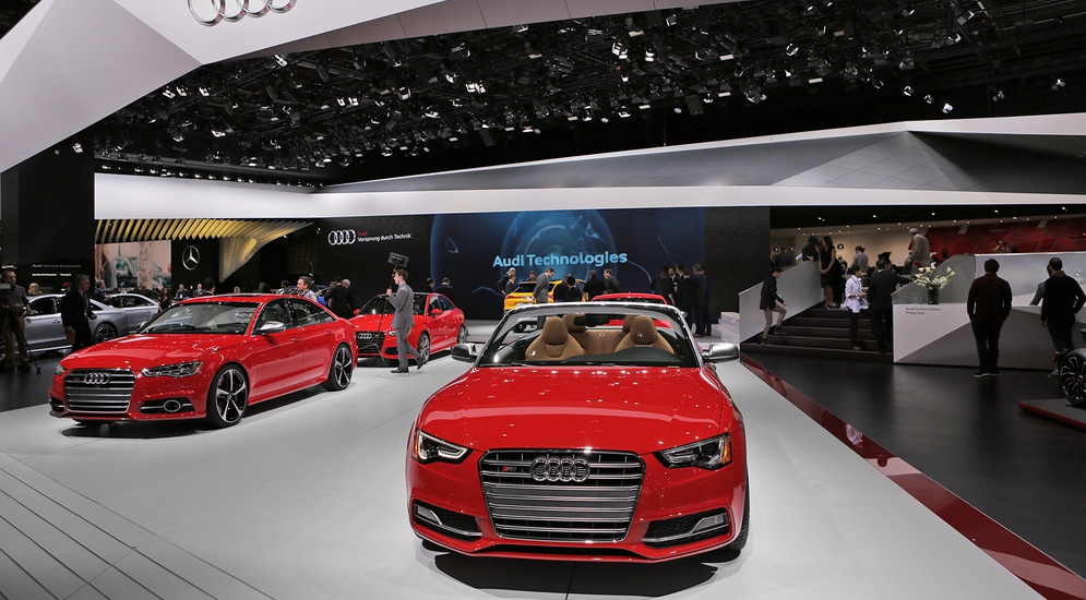 На стенде Audi была представлен новый универсал Audi A4 Allroad quattro, который до сих пор в США не продавался, хотя седан A4 является одной из самых популярных моделей производителя на американском рынке. Мотор в Америке один – двухлитровый TFSI мощностью 252 л.с., а вот для Европы выбор заметно шире: двухлитровые дизели (150, 163, 190 л.с.) и шестицилиндровые трехлитровые дизели (218 и 272 л.с.). Трансмиссия – «механика», «робот» S-tronic с двумя сцеплениями или восьмиступенчатый «автомат» для «топовой» версии.