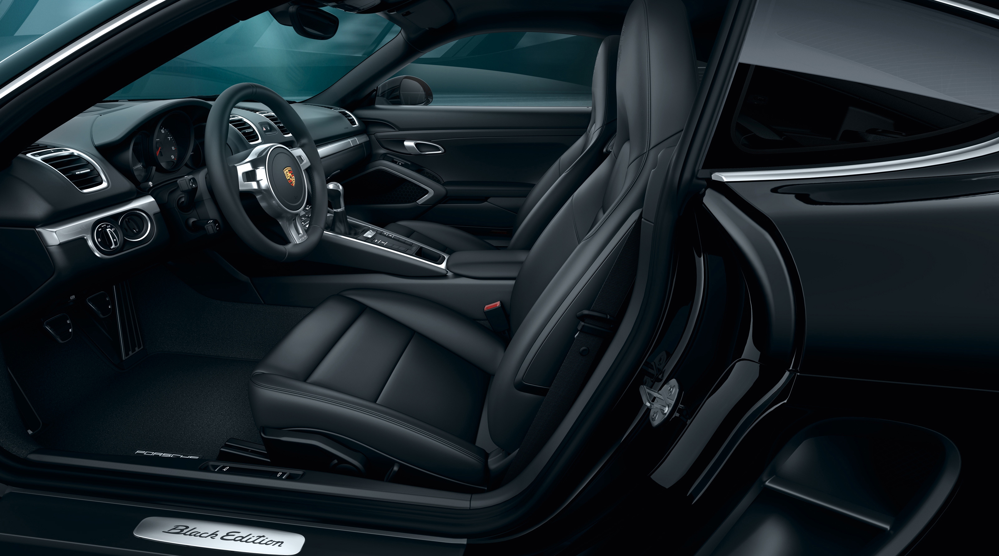 Ранее уникальная версия Black Edition была доступна лишь для автомобилей Boxster и легендарного купе 911 Carrera. Для "черной" версии характерна соответствующая отделка салона и экстерьера. Автомобиль построен на базе обычного Cayman с оппозитным мотором объемом 2,7 литра мощностью 275 л. с. Он позволяет выполнять упражнение "с места до 100 км/ч" всего за 5,7 секунды на "механике" и за 5,6 секунды на "роботе" PDK.