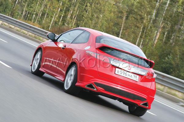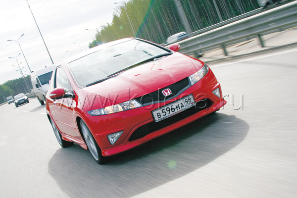 Благодаря той же отличной ходовой части скорость совсем не ощущается. Даже когда стрелка спидометра миновала отметку 200 км/ч, Type-R шел, словно по невидимым рельсам.