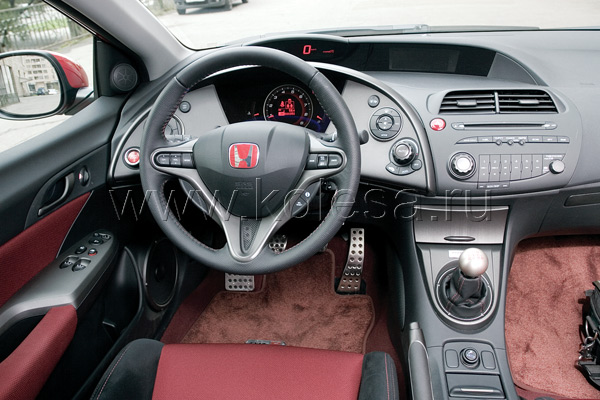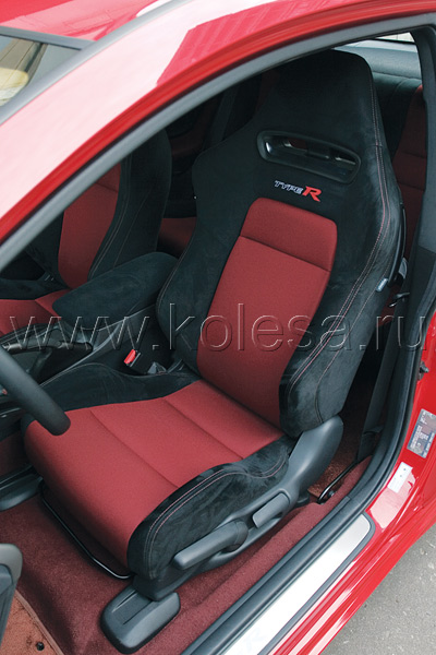 Вместо мягких и теплых кресел – жесткие и хваткие ковши: комфорт остался в гражданском Civic. Здесь вместо этого – жесткость и уверенность за рулем. Единственный недостаток спортивных сидений: они не примут людей с лишним весом (и в автоспорте нужно держать себя в форме).