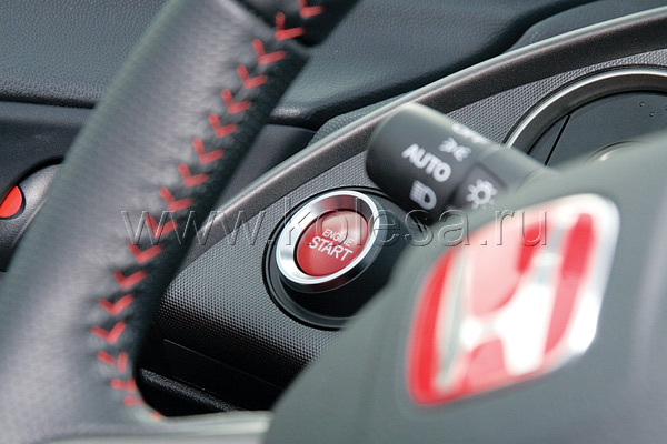 Двигатель Type-R запускается нажатием кнопки. Она находится слева от руля – эхо гоночных машин, выступавших в «24 часах Ле-Мана». Тогда пилоты от старта бежали к своим болидам и забирались в кокпит, одновременно заводя моторы. Но кнопка Start работает только после поворота ключа (замок зажигания – на привычном месте: справа от руля).