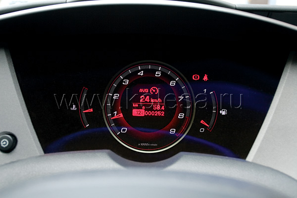 К тому же, теперь водитель видит, когда осуществляется переход на «высокие» кулачки распредвала (индикатор I-VTEC находится справа от спидометра) и знает, когда нужно переключать передачи (индикатор REV слева от спидометра). |