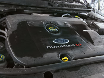 Снаружи дизель определяется по характерному, хорошо различимому на слух стрекотанию. Внутри же звук мотора практически полностью "съедается" шумоизоляцией, и потому о наличии под капотом именно дизельного двигателя можно догадаться лишь по вибрации, которая на непрогретой машине проявляет себя на рычаге коробки передач, но через некоторое время бесследно исчезает. Еще один признак необычности машины – приборная панель: цена деления тахометра гораздо ниже, чем на "Мондео" с бензиновыми силовыми агрегатами; к тому же к основному набору контрольных ламп добавилась пиктограмма, оповещающая о работе свечей накаливания.