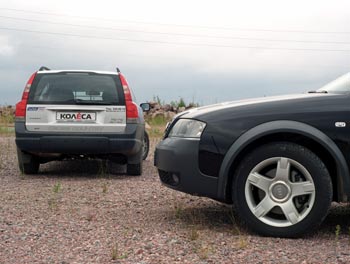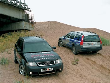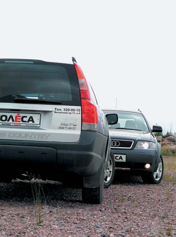 Срыв в занос, клубы пыли и барабанная дробь камешков по днищу… Жесткая ситуация для легкового автомобиля, игрушки для внедорожника. Напряжение на грани потери контроля в одном случае, торжествующая улыбка на лице в другом. Как бы то ни было, непосредственный впрыск адреналина в кровь гарантирован. Правда, наличие внедорожника – условие не обязательное. Достаточно полного привода и доброго клиренса, а такой набор есть и у некоторых легковых машин. Их всего четыре: модели Forester и Outback марки Subaru, Audi Allroad quattro и Volvo XC70 AWD. Forester играет сам в своем классе, новый Outback еще в продаже не появился, временно оставив Allroad и XC70 продолжать трехлетнее противостояние. XC70 непрерывно совершенствуется: в прошлом году вместо примитивной вискомуфты в трансмиссии автомобиль получил многодисковое сцепление, а совсем недавно модернизации подвергся его бензиновый двигатель. Allroad же наращивает мускулатуру, в 2002 году представ в топ-версии V8 4.2 с 300-сильным движком.