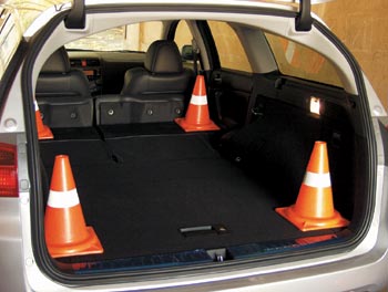 Вряд ли Tourer можно назвать "бездонным" – скорее, он берет продуманностью багажного отсека: каждый квадратный сантиметр приносит пользу, а то и две. Взять хотя бы многоуровневый пол – под большим люком скрыт поддон с емкостями, а еще ниже покоится запаска. Сам люк снабжен замком и фиксатором в поднятом положении. Это из разряда "мелочь, а приятно". Но настоящая звезда шоу – фирменная система Intelligent Seat System, позволяющая складывать задние сиденья в один прием. Нажатием кнопки разом пригибаются подголовники и отщелкиваются крепления спинки и подушки. Приводы подушки и спинки соединены, поэтому откидываются они вместе, формируя идеально ровную погрузочную площадку. А в стенках багажника есть подсветка и боксы. Иными словами, этот универсал имеет практический смысл.