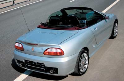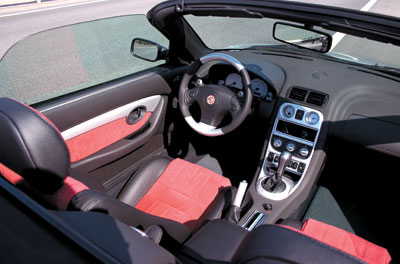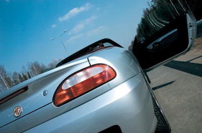 Кузов автомобиля – копилка сюрпризов. Под капотом, понятное дело, двигателя нет, там вольготно располагается запаска. Багажник невелик, а за его задней стенкой отчетливо просматриваются контуры двигателя. Забегая вперед, скажу, что любые опасения по поводу возможного нагрева кресел жаром работающего мотора абсолютно беспочвенны: теплоизоляция здесь продумана до мелочей. Жесткую крышу можно демонтировать только вдвоем, с мягким верхом можно справиться и в одиночку. Правда, вручную: электропривод крыши идет как 3500-долларовая опция. А еще у MG TF есть аэродинамический экран, устанавливаемый на открытой машине позади подголовников, – так воздушные вихри меньше беспокоят седоков.