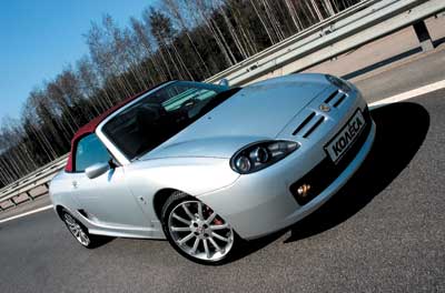Управляемость машины – тема для отдельного разговора. Для ее улучшения в ходе модернизации было сделано многое: хитроумную гидропневматическую подвеску Hydragas заменили на обычную, перейдя сзади на многорычажную схему. И передняя, и задняя подвески собираются теперь на подрамниках. Кузов усилен, а передаточное число рулевого механизма значительно уменьшено. Усилитель – электрический. Рулится MG TF, что ни говори, классно: команды выполняет резко, молниеносно, не кренится, с характеристикой изменения реактивного усилия все в порядке, разве что вблизи "нуля" обратная связь не столь четкая. Но эйфория недопустима и даже наказуема. Во-первых, покрышки Goodyear Eagle F1 не очень уверенно держат дорогу на поворотах – возможно, еще не прикатались. Хотя и раньше за ними такой грешок водился. Во-вторых, расположение двигателя в базе, вблизи вертикальной оси вращения, означает непредсказуемость реакции автомобиля на сброс газа при повороте. Можно получить боковое скольжение, а можно и с заносом столкнуться. Причем тот же занос развивается и при добавлении газа. Будьте начеку! И не бойтесь давить на тормоз – как раз тормозам MG можно всецело доверять.