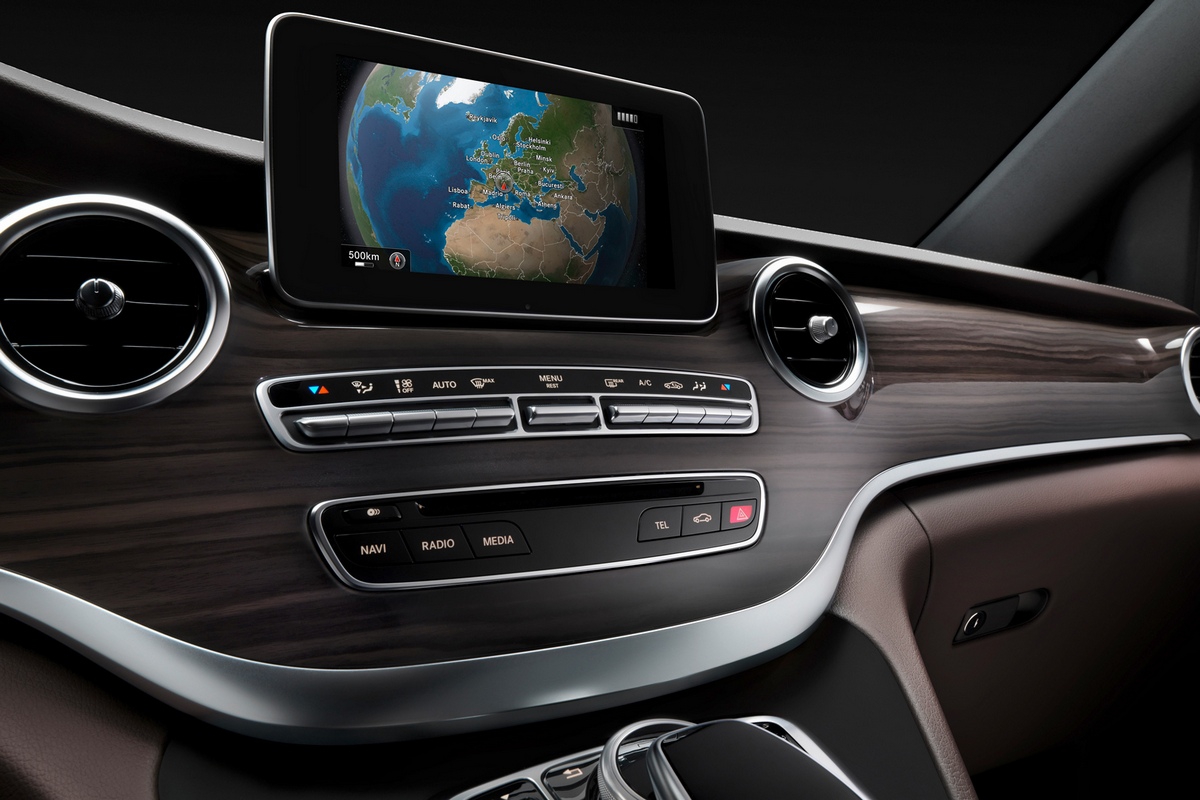 Новый V-class смог передать всю атмосферу роскоши представительской марки. Где вы ещё видели грузо-пассажирский фургон с обшитой кожей передней панелью и струящимся из-под неё светом, развлекательной системой с выходом в Интернет и управлением с помощью тачпада, а также высококлассной акустической системой Burmester? И это лишь малая часть того, что может предложить автомобиль.