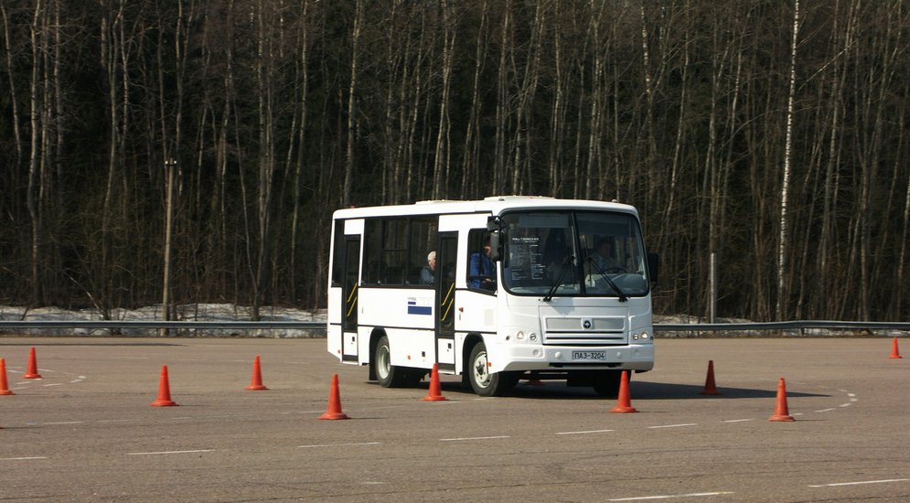В ходе теста машины выполняли различные типовые «упражнения» для оценки управляемости: такие, как «Перестановка», движение автобуса с объездом препятствий – «Змейка», заезды автобуса задним ходом – «Гараж». Был проведен тест на экстренное торможение автобуса ПАЗ-320402 как с применением системы АВS, так и с ее отключением, а также преодоление подъема под углом в 40 градусов.