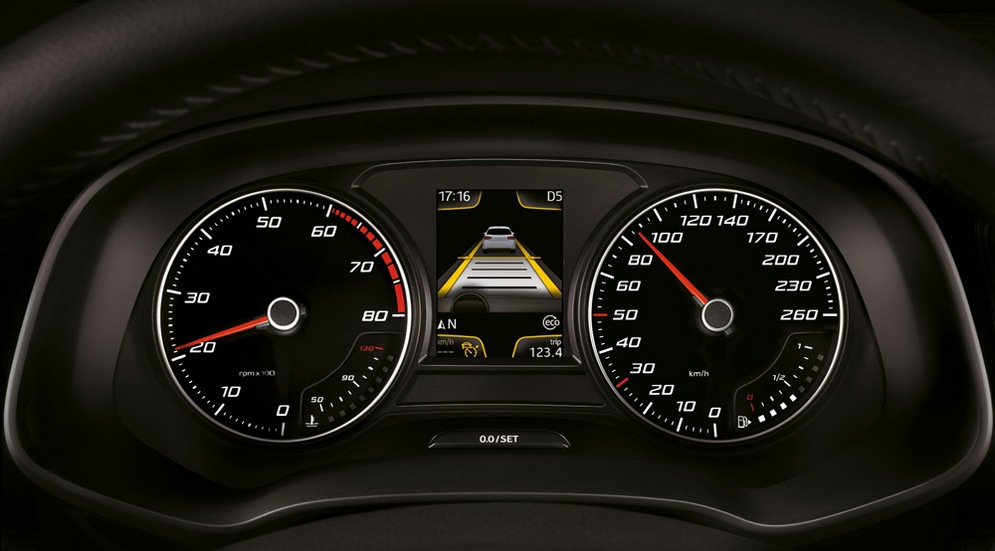 Главная «фишка» интерьера – новый сенсорный дисплей с управлением, как на планшете, и датчиком приближения руки. После захвата мира айфоно-андроидными системами пользоваться им не столько удобно, сколько привычно. Но и «железо», и «софт» ещё есть куда «прокачивать»: переключение окон порой подтормаживает, а навигация плутает даже в родной Барселоне. Зато «акустика» Seat Sound звучит отлично.