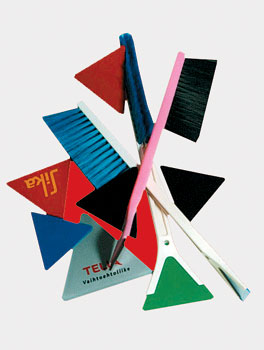 Кстати, о скребках. Этот небольшой кусочек пластмассы в умелых руках может превратиться буквально в палочку-выручалочку. Чтобы убедиться в этом, достаточно побывать в цехах компании Hakki-Plast. Она специализируется на выпуске именно этих нехитрых мелочей. Но в руках дизайнеров компании они превращаются в карточки платных парковок и даже... в калькуляторы, с помощью которых можно рассчитывать пробег на заправленном количестве бензина. Знаете, сколько моделей скребков можно придумать? В каталоге Hakki-Plast их более сотни. Самые интересные из них – со сменными вставками из мягкой стали или пластика. Такие скребки служат несколько сезонов, только успевай менять вставки.