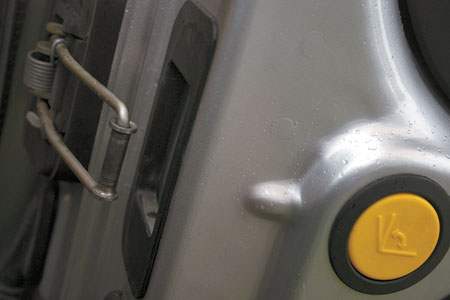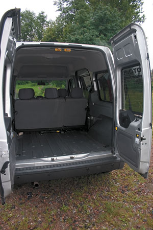 При этом машина еще и удобна. Рабочее место водителя грамотно организовано, обзорность замечательная – спасибо огромной площади остекления, большим "двухэтажным" зеркалам и створкам задней двери с индивидуальными "дворниками" и обогревом стекол. Армию емкостей для всевозможной мелочи возглавляет широкая полка над головами водителя и его соседа. Задние пассажиры буквально купаются в море "автобусного" пространства. К их услугам – широкая сдвижная дверь по правому борту, а за какие-то $252 можно заказать такую же и слева. Задняя дверь имеет свою хитрость: ее створки раскрываются аж на 172 градуса, для чего нужно нажать на желтые кнопки, освобождающие фиксаторы. Так достигается оптимальный доступ к проему размерами 1293Х1316 мм.