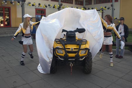 Нам – то есть мне и нескольким дилерам, собравшимся по призыву компании Rosan на российскую презентацию нового ATV Bombardier Outlander 800 H.O. EFI, – предстоит выбраться на берег. Вообще-то "берег" – это сильно сказано. Проехавшая перед нами группа из полутора десятков квадриков превратила его в хорошо замешанную грязе-водную субстанцию. Субстанцию, с которой бесполезно бороться при помощи внушительных грунтозацепов, шин низкого давления и семидесяти трех ньютон-метров. Вот один "аутлендер" выкарабкивается методом барона Мюнхгаузена – тянет себя сам посредством лебедки.