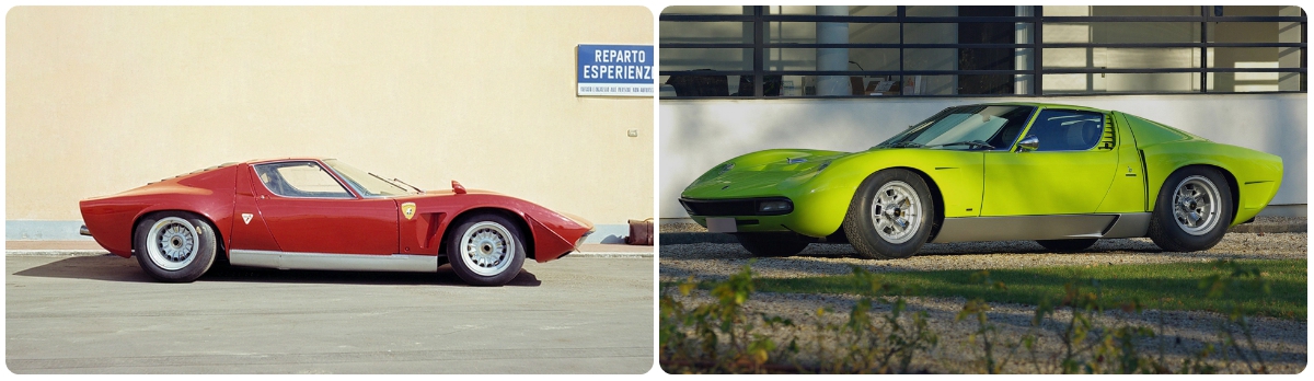 Названная в честь испанского фермера Эдуардо Миуры, прославившегося великолепными быками, которых он разводил специально для корриды, Miura произвела нешуточный фурор на Женевском автосалоне 1966 года. Двадцатипятилетний дизайнер студии Bertone Марчелло Гандини создал невероятно притягательный, харизматичный и стремительный силуэт. Плавные обводы приземистого кузова выглядят максимально завершенными и лаконичными, отлично передавая в то же время хищный характер автомобиля, в котором как нельзя лучше читается истинно итальянский подход к созданию суперкаров. Чего стоят только обрамленные функциональными и стильными «ресничками»-воздуховодами фары, которые в выключенном положении находились в одной плоскости с капотом. И плевать, что по факту они были позаимствованы у бюджетного Fiat 850 Spider – здесь они смотрятся просто сногсшибательно.