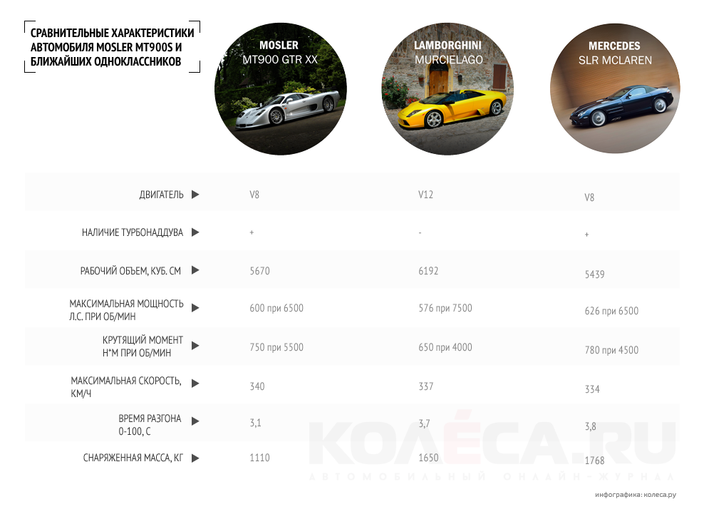 Краткие технические характеристики Mosler MT900S и ближайших одноклассников