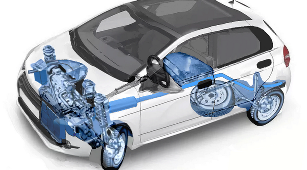 Двигатель — двухцилиндровый, четырехтактный, расположен поперечно, конструктивно схожий с ВАЗ 11113. Т. е. половинка мотора 11183 или 11186 с балансировочным валом для снижения вибраций, объемом 798 см3 и с четырехклапанной головкой блока. Можно подумать над половинкой 1,8 л (0,9 л) и восьмиклапанной ГБЦ (по четыре клапана на цилиндр) для более оснащенных модификаций. Почему такая конструкция? Она позволит создать компактным моторно-трансмиссионный отсек и, соответственно, короткий капот и передний свес. КПП — механическая, четырехступенчатая или четырехступенчатая АМТ (то есть, «робот»), привод на передние колеса.
