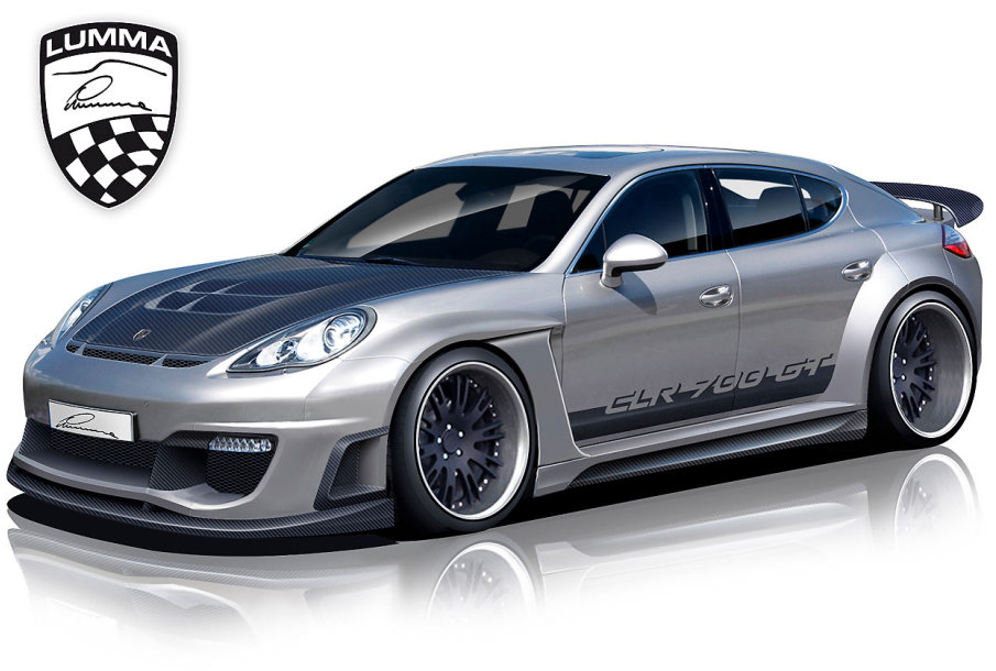 Тюнинг-проект Panamera авторы назвали CLR 700GT, и если смысл, сокрытый за буквами названия оставляет простор для фантазии, то цифры можно расшифровать только одним способом. Да-да, под капотом «Панамеры от Люммы» пасутся 700 лошадей, держать на траектории которых инженеры смогли, уменьшив клиренс на 35 мм. Кроме того, Lumma одели Panamera в новый передний бампер, наградили расширенными арками и врезали воздуховоды в карбоновый капот и крылья. Последний штрих – 22-дюймовые легкосплавные диски.