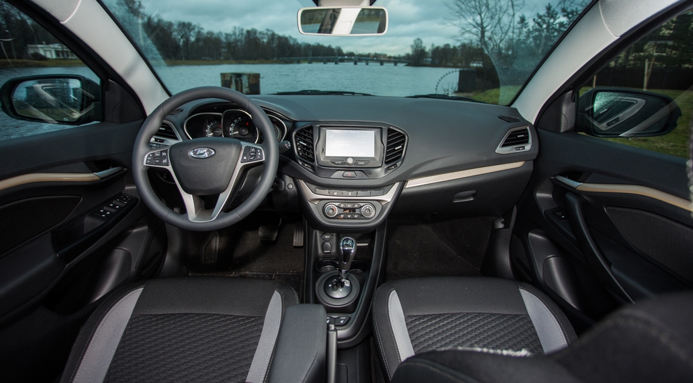 Но вернемся же на трассу. Управлять машиной в ручном режиме не так-то просто – надо все время коситься на тахометр, потому что услышать обороты мотора, отличить 2 000 от 3 500, на скорости за 90 км/ч решительно невозможно. Комплимент? Что ж, вполне. Вазовцы прекрасно поработали над шумоизоляцией моторного отсека, и Веста ощутимо тише и всех прежних тольяттинских моделей, и конкурирующего Логана. За последнее отвечаю как экс-владелец «француза», отмеривший на нем дистанцию Питер – Москва раз 30, не меньше. Увы, но благостную картину на Весте портят арки – шипованные колеса дают такой мощный гул, что не слышно ни мотора, ни музыки.