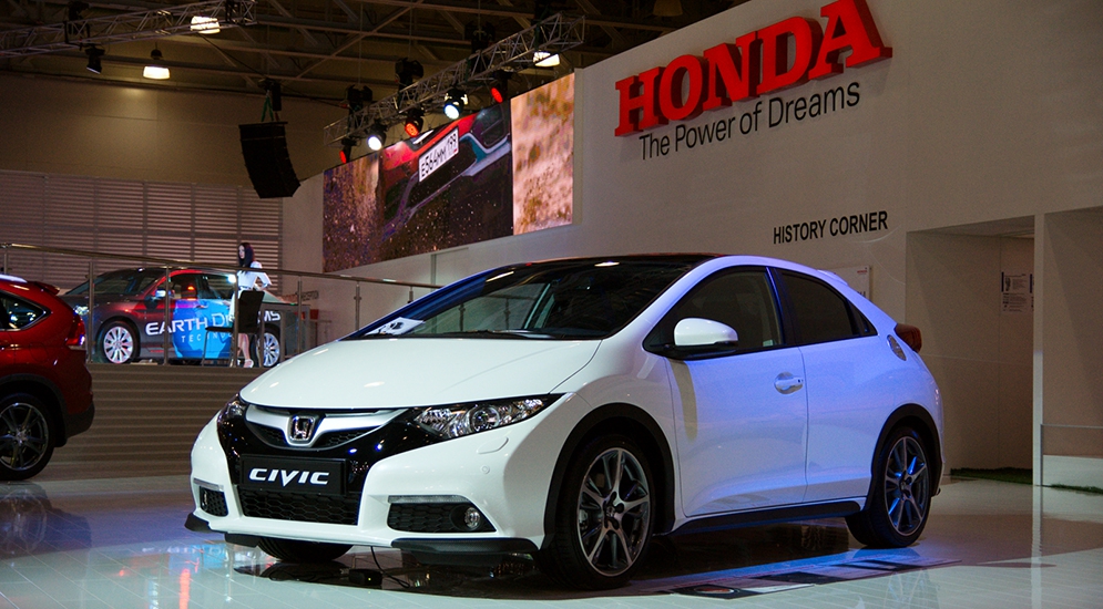 "Хонде" нужно было бы развернуться с размахом — продажи новых автомобилей марки в России падают сильнее, чем рынок в целом. Но японцы решили ограничиться скромным стендом площадью чуть больше тысячи "квадратов". Плюс дочерней "Акуре" выделили 646 кв. м. по соседству. Стоимость аренды не оказалась для Хонды разорительной: всего-то нужно продать семь кроссоверов CR-V с 2.4-литровым мотором…