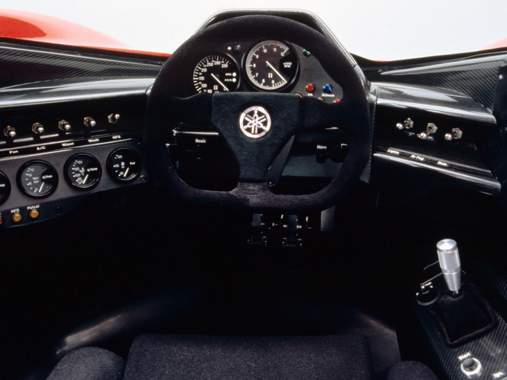 В 1992 году в Ямахе задумались о создании собственного суперкара с этим мотором, который совместил бы технологии гоночных автомобилей Формулы-1 и дорожных суперкаров. Разработку компоновки доверили инженерам английской компании IAD. Изначально машина задумывалась как четырехколесная интерпретация спортбайков Ямахи: рассматривалась, например, компоновка салона, где водитель и пассажир сидят друг за другом тандемом, однако впоследствии оставили только одно водительское сиденье посередине. «Автомобиль для эгоиста» имел в основе углепластиковый монокок и независимые подвески с толкающими штангами типа push-rod от формульного болида, а внешний дизайн углепластиковых же панелей был разработан с оглядкой на дизайн автомобилей группы С.