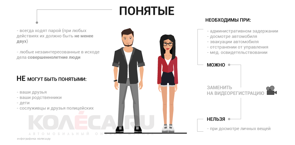 В соответствии со статьей 25.7 КоАП РФ понятым может быть любое незаинтересованное в исходе дела совершеннолетнее лицо. Понятых должно быть не менее двух.