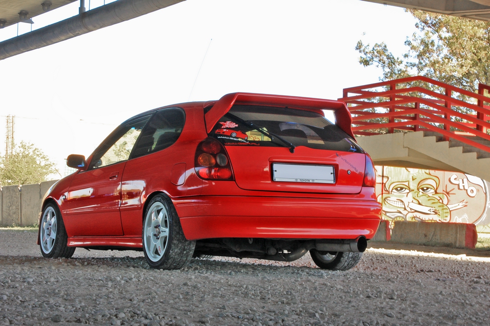 В 2006 году после продажи ВАЗовской «восьмёрки» (ах, как же это знакомо!) Александр ушел в поиски надёжного, недорогого, но обладающего изюминкой автомобиля. Все три критерия воедино смог собрать в себе лишь один – трёхдверный хэтчбек Toyota Corolla в интересной комплектации G6. После встречи с ней главный конкурент, Honda Civic EK, был вычеркнут из списка претендентов на покупку. Несмотря на меньший по объёму двигатель 1,3 (против 1,4 у Сивика), Королла обладала практически аналогичной мощностью, шестиступенчатой коробкой передач (отсюда и название комплектации), салоном разработки канонического бренда Recaro и рядом других «бонусов», делавших выбор в её пользу очевидным. За три года владения той «глазастой» Corolla Александр привнёс в неё массу изменений, но главное – полюбил раз и навсегда.