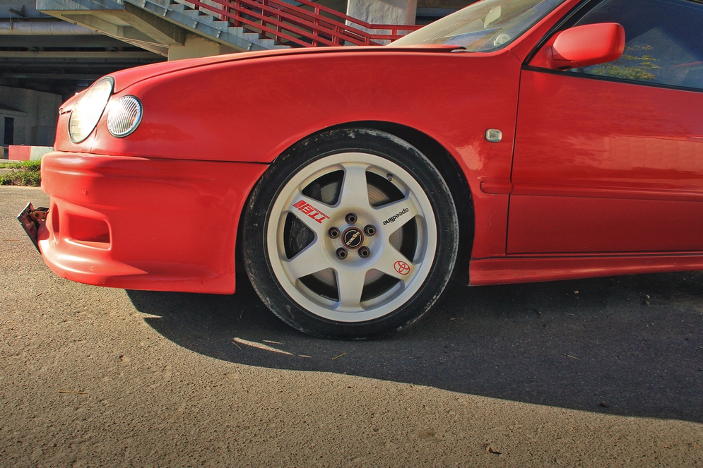Наслаждение купленным автомобилем продлилось недолго, несмотря на то что он и в заводском состоянии наполнен «ништяками». Corolla G6R служила омологационной версией для успешно выступавшей в мировом ралли 1998 и 1999 годов Corolla WRC. Список её отличий от стока внушителен: алюминиевый капот, заниженная на 30 мм подвеска, дисковые задние тормоза, ремни безопасности красного цвета и многое другое. Спустя год после покупки в подкапотном пространстве свое место занял новый двигатель 4A-GE Black Top, который смог обеспечить вожделенную динамику – в спринте «0-100» Corolla начала выезжать из восьми секунд. Такому показателю позавидуют и многие современные компактные хэтчбеки, но поводов останавливаться на достигнутом у Александра не появилось.