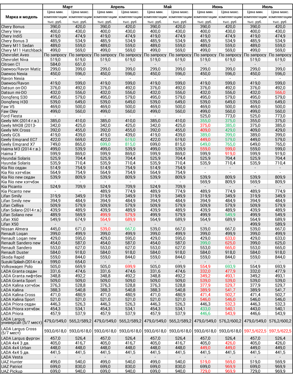 Разумеется, далеко не все цены на новые автомобили оставались неизменными в течение года: происходили корректировки и поправки на курсы валют, менялись и добавлялись комплектации, а также проводились акции, в связи с чем цены росли, а иногда снижались. Мы свели все данные с марта – месяца открытия рубрики – в одну удобную инфографику, где можно наглядно отследить, как менялись прайс-листы за все это время.