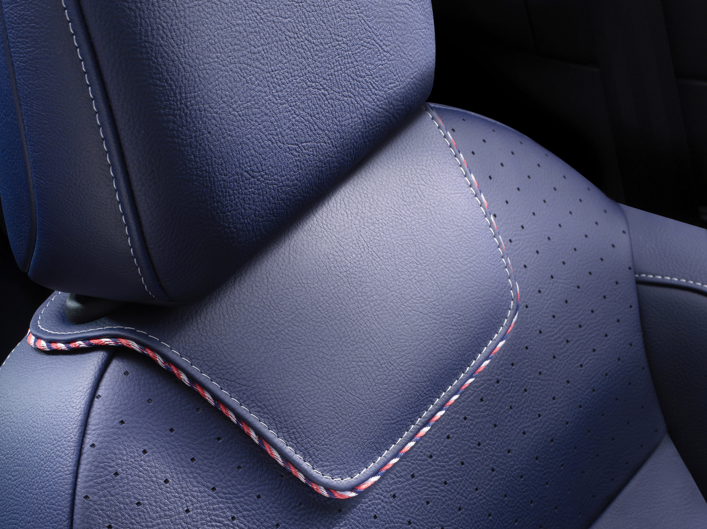 Красный цвет для зеркал тоже уникален. Его название говорит об этом — Ines Red. По нижнему краю заднего стекла пустили трехцветную полоску, на решетке радиатора и средней стойки появился шильдик с названием дома моды, который принимал участие в создании концепт-каров.