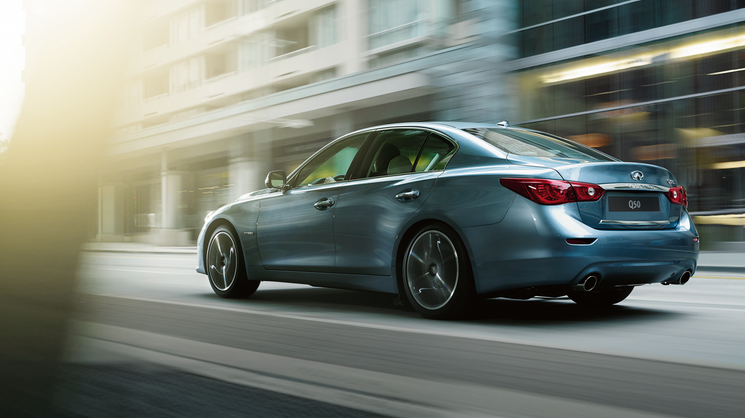 Дизайн Q50 стал выразительнее; обновились передняя решетка и оптика со светодиодами. Автомобиль получил изящные 19-дюймовые легкосплавные диски. Внутри теперь два сенсорных цветных экрана и новая мультимедийная система.