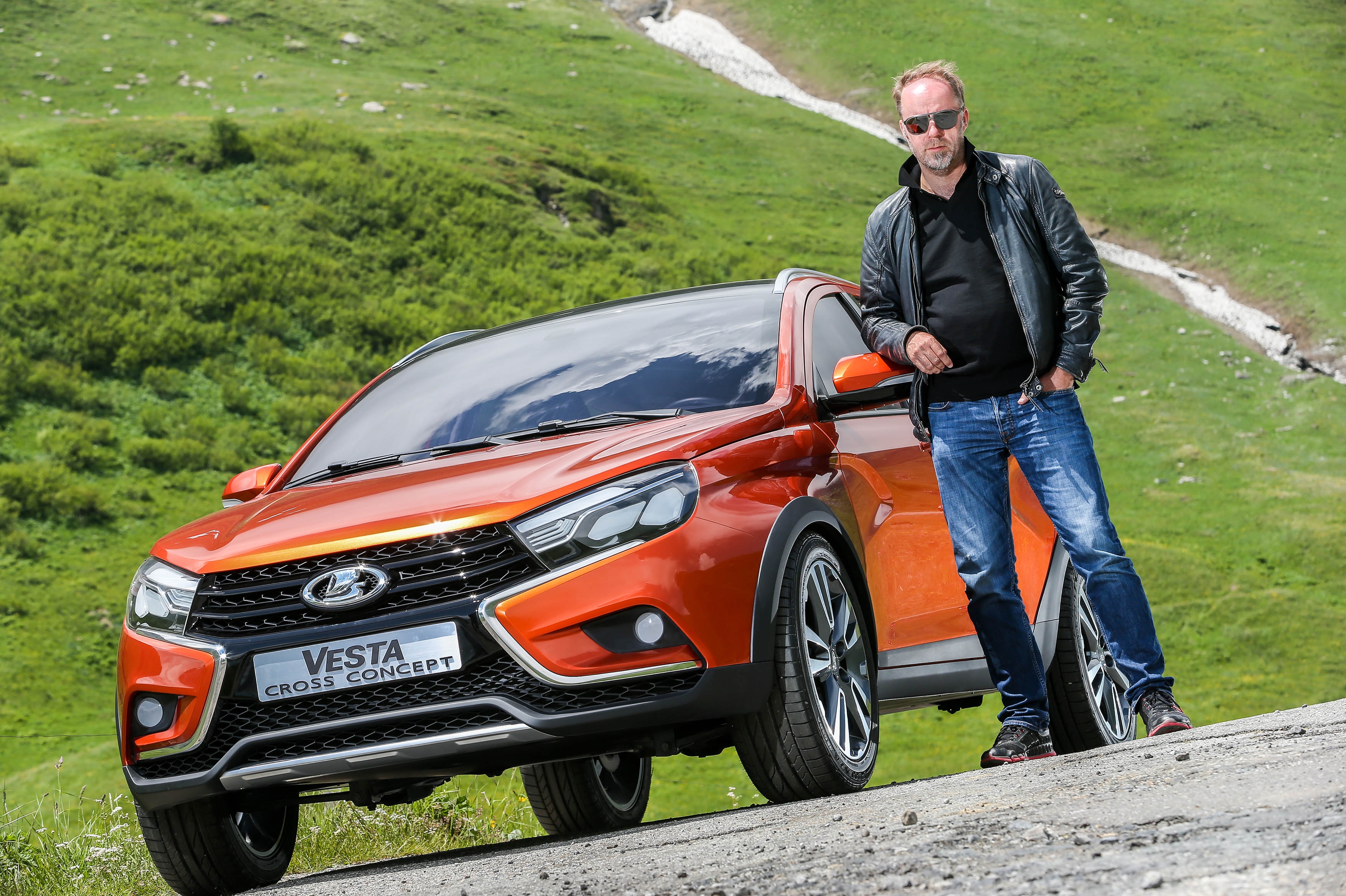 На фото: концепт Lada Vesta Cross и шеф-дизайнер Lada Стив Маттин, создатель фирменного Х-стиля марки, в котором будут переоформлены все модели