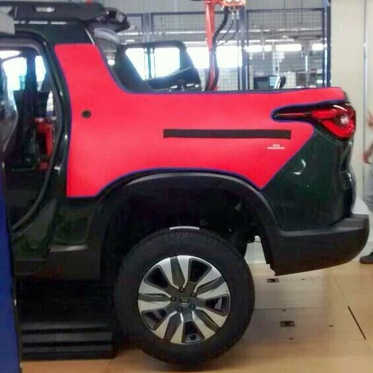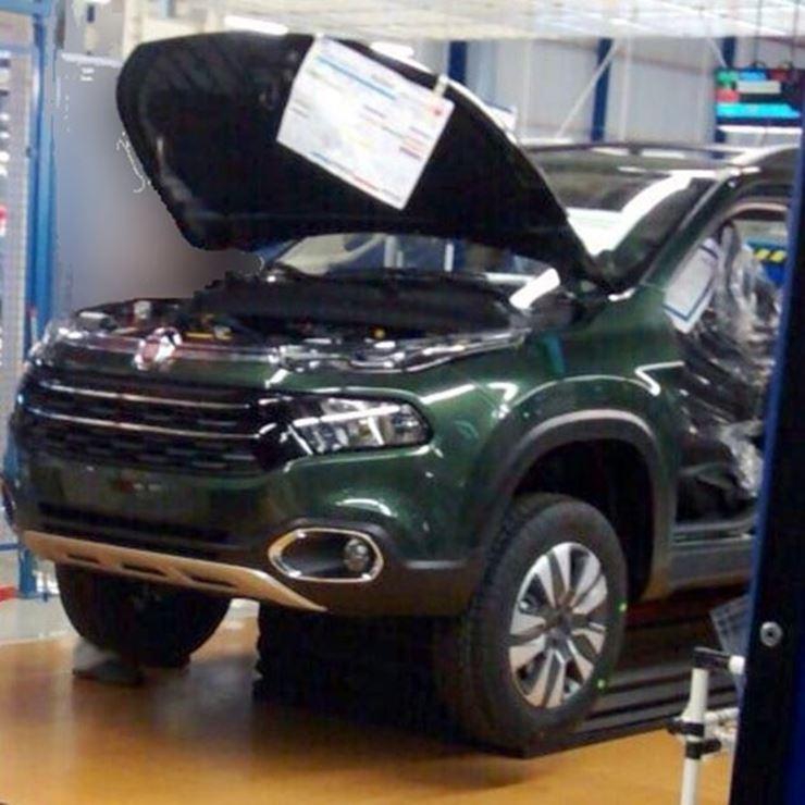 Бразильский портал Novida des Automotivas опубликовал первые "натурные" фото полноразмерного пикапа Fiat Toro, сделанные на бразильском заводе в штате Пернамбуку на востоке Бразилии. Сходу бросается в глаза нестандартный распашной задний борт, состоящий из двух створок. Механизм открывания борта спрятан за исполинским фирменным логотипом.