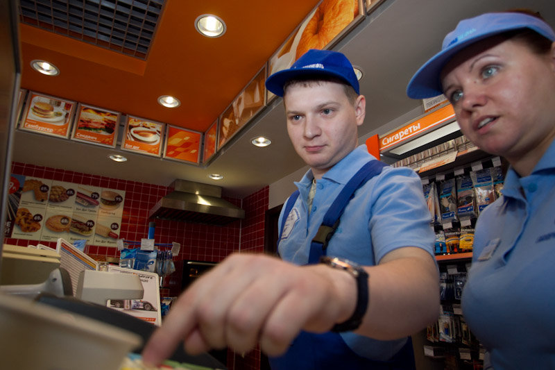 Если думаете, что работа оператором подразумевает только общение с деньгами и кассовым аппаратом, то вы ошибаетесь. Каждый уважающий себя сотрудник АЗС должен еще уметь готовить. В местном кафе. Впрочем, не пугайтесь, вам понадобятся минимальные кулинарные навыки. Надо всего лишь разогреть булку и соединить ее с мясным изделием (котлетой или сосиской) – и хот-дог или гамбургер уже готов быть растерзанным голодным клиентом.