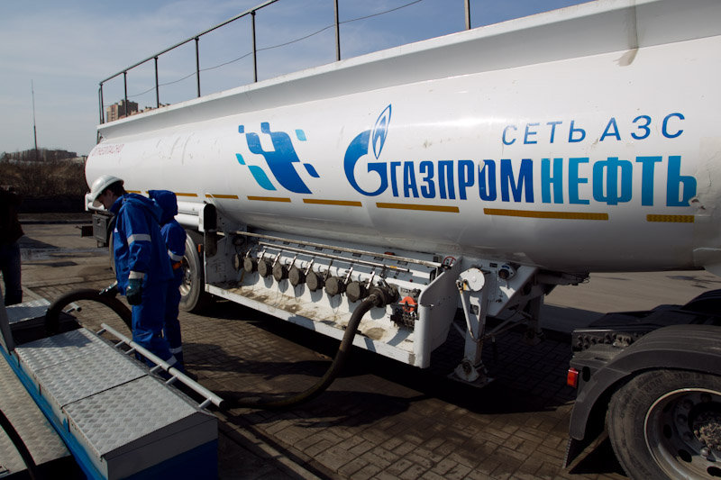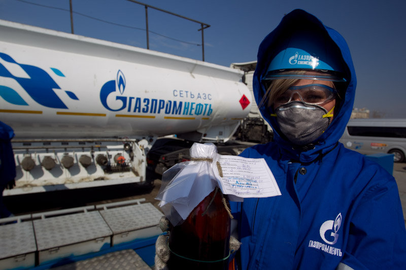 Хрупкая девушка оделась в защитную экипировку и взяла пробы привезенного бензина в специально приготовленную колбу из темного стекла. Тару с пробой положили в отдельный ящик, чтобы использовать ее в качестве материала для экспертизы в случае возникновения претензий к качеству. Кстати, цистерна бензовоза не является цельной конструкцией; она разделена на несколько отсеков, каждый из которых заполняется разными видами топлива.