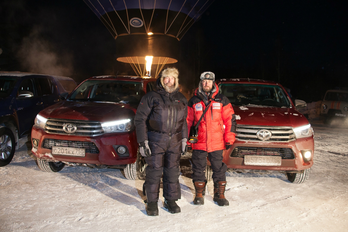 Беспосадочный полёт диктовал условия маршрута для Toyota Hilux: постоянно меняющаяся траектория полёта вынуждала экипаж пикапа, который возглавлял сын Фёдора Конюхова – Оскар, то и дело менять направление, чтобы не потерять воздушный шар из виду. В пресс-центре компании Тойота отметили, что путь пролегал в том числе по труднопроходимым просёлочным дорогам и заснеженному бездорожью в тёмное и светлое время суток при экстремальных минусовых температурах.
