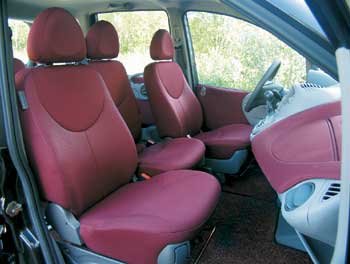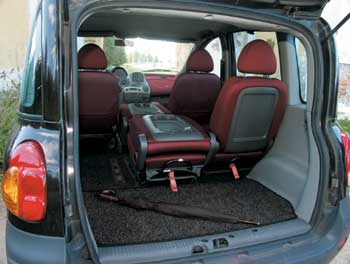 Интерьер "Мультиплы" не менее оригинален, чем ее внешность. Однако при всей своей вычурности он еще и практичен – редкое, надо сказать, сочетание. Во многом потрясающая функциональность машины – это заслуга заложенной в нее концепции. Размышляя над тем, каким должен быть истинно семейный автомобиль, фиатовцы придумали следующее: надо взять шесть сидений (а у итальянцев обычно большие семьи) и поставить их в два ряда по три штуки. В результате получилась широкая, но короткая машина – компактная, но в то же время очень вместительная. Пол получился абсолютно ровным, а каждое кресло может быть либо сложено пополам (образуется обеденный стол), либо вынуто совсем (образуется свободное место). При полном демонтаже сидений Multipla превратится в фургон.