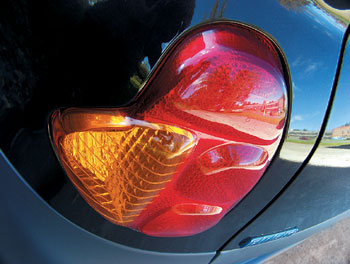 К тому же у каждой из частей уже были свои фары, и потому находишься под впечатлением, что с ними здесь явный перебор. Они везде: под лобовым стеклом и на низком капоте, а в бампере – "противотуманки". Этакая забавная "глазунья на колесах"!