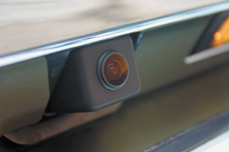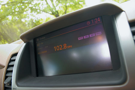 Стиль интерьера – это обязательный "алюпластик" и хром-приборы. А руль здесь – так и вовсе от спортивного Nissan 350Z! Большой дисплей должен по замыслу обслуживать навигацию, которая в России – сами понимаете. Зато – красиво! А еще на монитор при включении заднего хода вылезает цветной пейзаж кистей камеры, расположенной над номерным знаком. Нет, вы только посмотрите: земля-то, оказывается – и впрямь круглая! И пищит – то парктроник чего-то учуял. Тормозим.