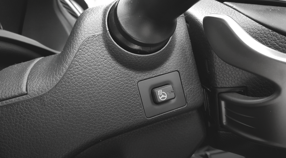 Кнопка включения подогрева руля находится под переключателем сигналов поворотов – если не знать, то померзнешь, найдя не сразу.