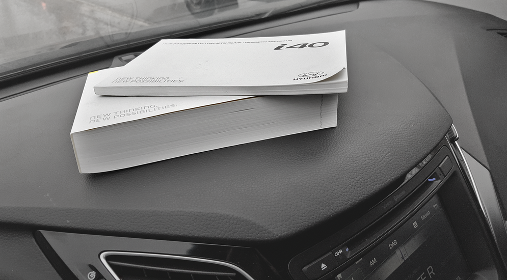 Материалы отделки салона — то, что во многом определяет ощущение от машины. В салоне i40 подавляющее большинство материалов — искусственного происхождения, и выразительно дорогие (или хотя бы пытающиеся таковыми выглядеть) среди них отсутствуют. Те же, что использованы, применены и скомбинированы небесспорно – возникает ощущение, что «салон недостаточно дорогой». Очень много черного и явно не хватает подчеркивания металлом в отделке – хотя это и «опасный» материал, с которым легко перейти грань дурновкусия.