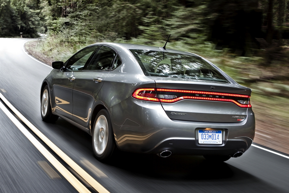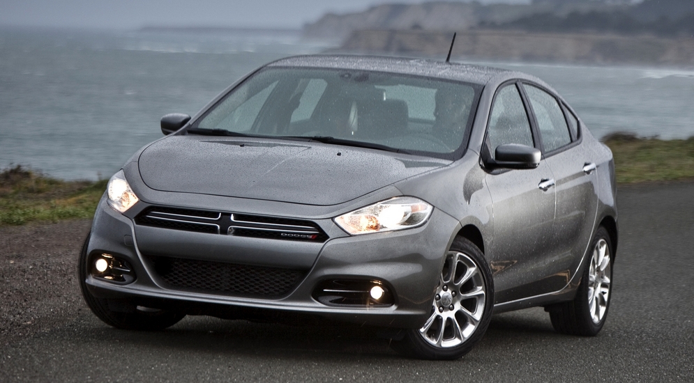 В результате попытки догнать и перегнать расходящиеся как горячие пирожки немецкие и азиатские седаны гольф-класса союз Крайслера и Фиата породил Dodge Dart, один из самых больших (4 672 х 1 830 х 1 465 мм) и тяжёлых (от 1 456 кг) автомобилей в сегменте. Построенный на модифицированном шасси Alfa Romeo Giulietta, в США Дарт предлагается с несколькими бензиновыми 4-цилиндровыми двигателями: 1,4-литровым 160-сильным турбированным и атмосферными 160-сильным 2-литровым и 184-сильным 2,4-литровым. Трансмиссии – на любой вкус и цвет: роботизированная КПП с двумя сцеплениями (сочетающаяся только с самым маленьким двигателем), гидротрансформаторная 6-ступенчатая АКПП и механическая 6-ступенчатая КПП. Опций по современным меркам не так уж и много, и все они стандартные для класса: бесключевой доступ, мультимедийная система с расширенными возможностями и большим экраном, запуск двигателя кнопкой, камера заднего вида и т.д.