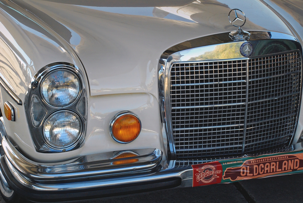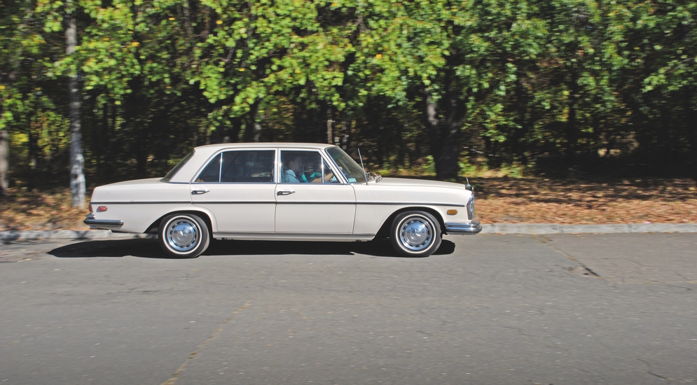 В наших руках поздняя машина 1972 года – уже через год поколение сменит следующий S-класс в кузове W116. С первого взгляда ясно, что машина предназначалась для рынка Северной Америки. Версию для США и Канады можно отличить по дополнительным габаритным огням и катафотам на боковинах кузова, а также по селектору автоматической трансмиссии, прописавшемуся на рулевой колонке, – европейские машины имели селектор в более привычном месте, между креслами.