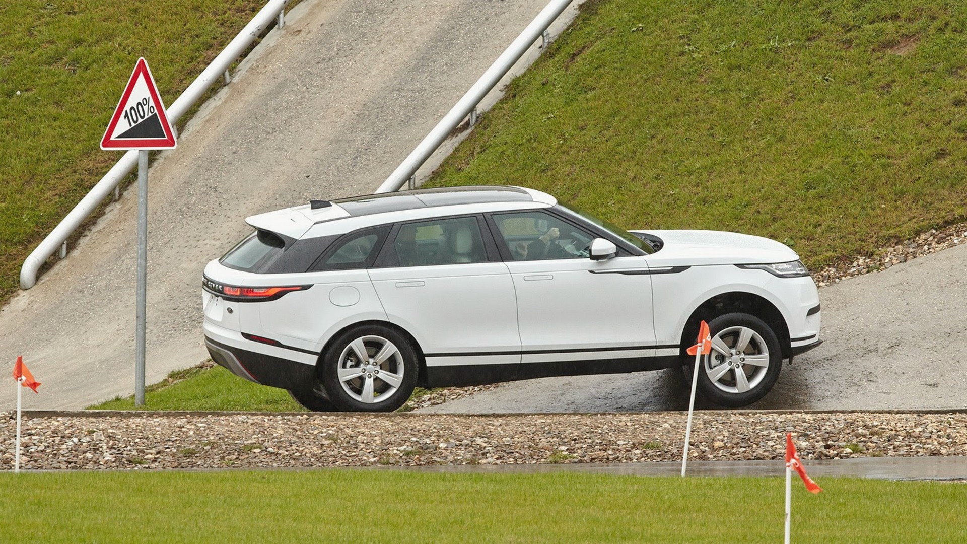 Например, представьте себе, что вы поднимаетесь вверх по склону по грунтовой дороге с частично обледеневшими участками, на которые попадают расположенные по диагонали колеса. На подавляющем большинстве кроссоверов и внедорожников вы, скорее всего, сможете пройти его только ходом, чтобы инерция движения помогла вам проскочить засадные места, где автомобиль попадает «на диагональ». Но само по себе движение ходом в таких условиях может быть опасным, а если запаса инерции не хватит, и вы потеряете контроль, все это может закончиться эффектными «ушами». А вот Velar проходит такие места вообще без напряжения. Более того: вы даже можете остановиться в таком месте, а потом спокойно тронуться вверх!