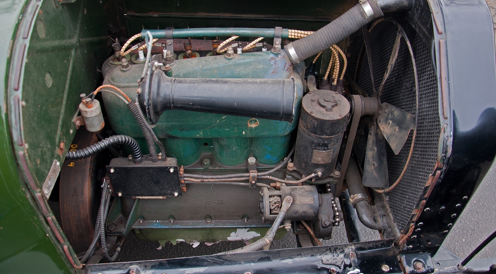 Процесс запуска двигателя – это вообще нечто феерическое. Сначала в машину надо залить технические жидкости. Тут их две, причём одна из них – обычная вода. Керосин заливается в топливный бак, горловина которого находится на приборной панели перед лицом пассажира. Бензонасоса (назовём так, ведь не назову же я эту деталь «керосинонасос», не так ли?) в топливной системе автомобиля нет, керосин поступает самотёком. Но перелить карбюратор не страшно: он с восходящим потоком, а таким карбюраторам перелив не грозит. Думаете, такая конструкция могла существовать только сто лет назад? Как бы не так. На наших «полуторках» отсутствие бензонасоса с одновременным присутствием карбюратора с восходящим потоком присутствовало до 1950 года. А вот на начало ХХ века это была самая что ни на есть прогрессивная конструкция.