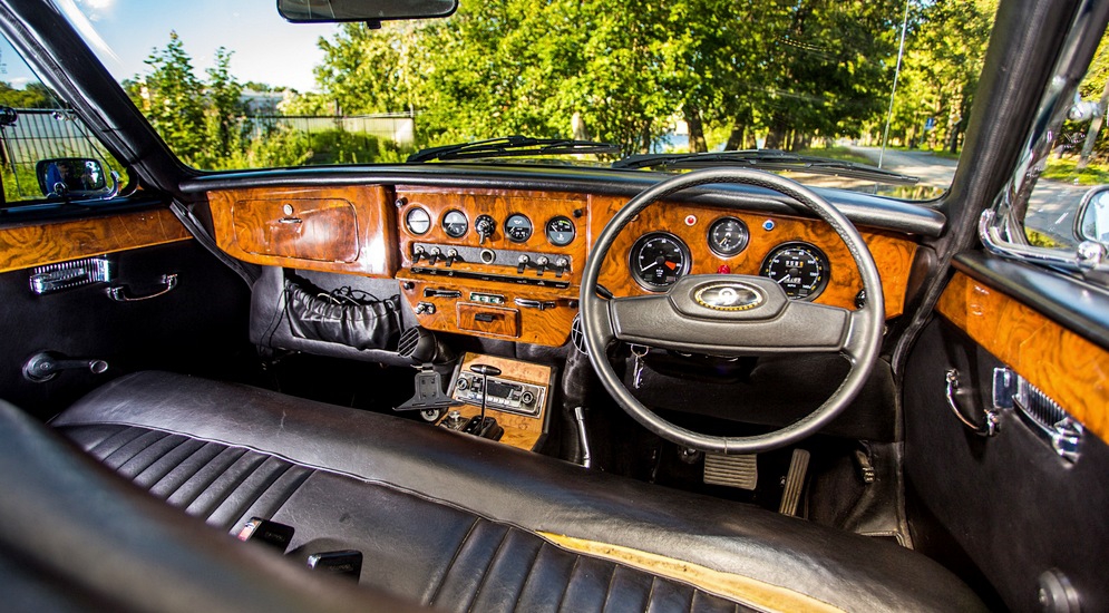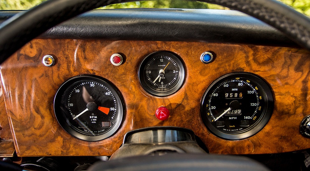 Все приборы круглые, стрелочные, на черной подложке. Перед водителем только самая необходимая троица: cпидометр, тахометр и часы. Все остальное, включая показатель уровня топлива, перенесли на верх центральной консоли. Между этими приборами – «барашек» включения света. Ниже расположились включение подсветки приборов, управление внутренним освещением, дворниками и «омывайкой» и переключатель выбора между правым и левым топливным баком. Управление печкой, естественно, ползунковое, есть обязательный прикуриватель и пепельница. По краям передней панели расположены черные болтики, открутив которые руками, можно без всякого инструмента получить доступ к предохранителям и проводке. Бардачков, до которых, впрочем, еще нужно суметь дотянуться, целых два. Верхний, деревянный, запирается на ключ: в нем спрятан рычажок принудительного открывания воздухозаборника на капоте. Нижний бардачок, он же кожаный мешочек, предназначен для дорожных карт. А вот и старый знакомый – аналогичный рычаг трехступенчатого автомата мне встречался в Jaguar XJ-S.