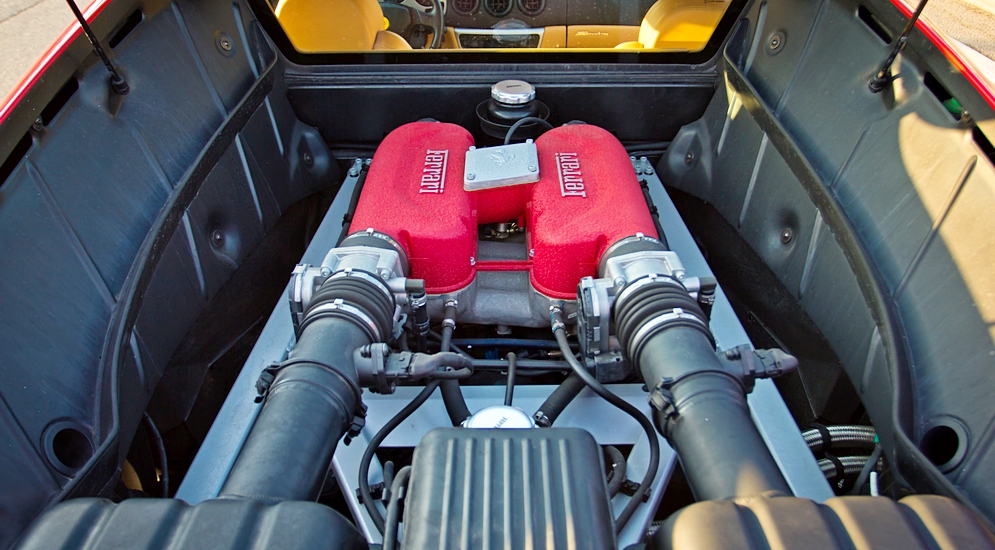 В Ferrari 360 Modena установлен 40-клапанный двигатель Tipo F131 V8 объемом в 3,6 литра и мощностью в 400 лошадиных сил, а все эти силы принимает на себя роботизированная коробка передач и разгоняет 1290 килограммов автомобиля до 100 км/ч за 4,5 секунды. Такой разгон даже в наше время считается весьма нехилым. Мотор в средней части автомобиля, и он, как произведение инженерного искусства, вызывающе смотрит на тебя из-под стекла «капота»: красные корпуса впускных коллекторов с надписью Ferrari и большая банка выхлопной системы поблескивает под стеклом...