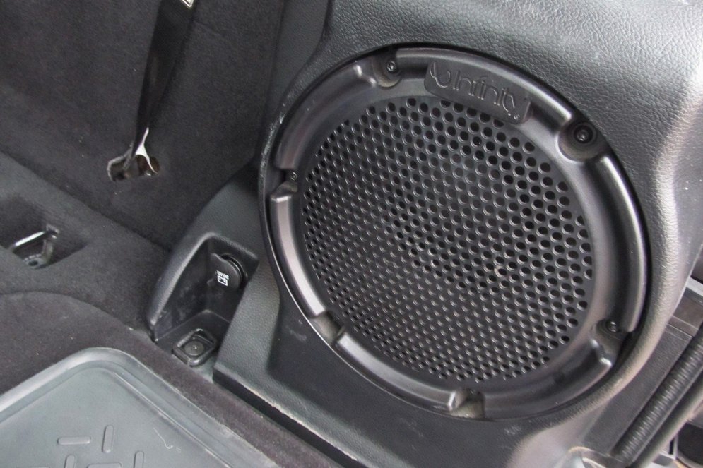 Багажное отделение Джипа, в номинальном положении, условное – 142 литра. Зато здесь есть и 12-вольтовая розетка, и потайная ниша, и практичный двусторонний коврик, и опциональный сабвуфер акустической системы Infinity.