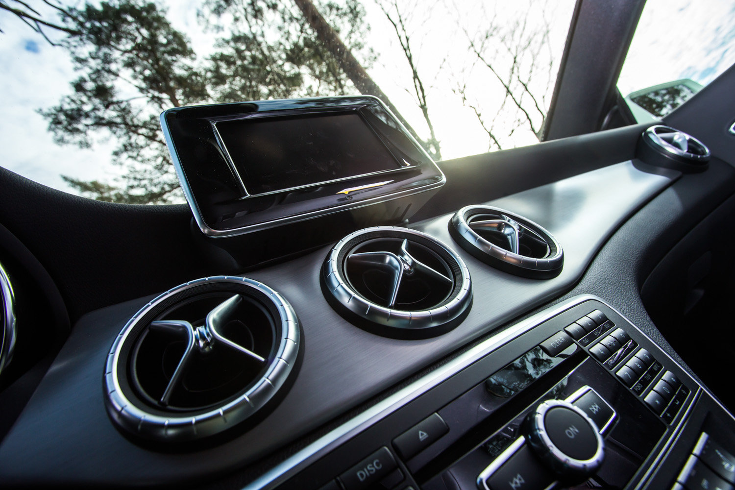 В салоне стилистически спокойнее. Однако всё тот же AMG-пакет добавил значительную долю атмосферы, а хороший уровень оснащения – мерседесовские роскошь и лоск. В отличие от A-class, ковшеобразной формы сиденья и гоночного вида щиток приборов вместе с подрезанным спортивным рулём смотрятся в CLA как родные.