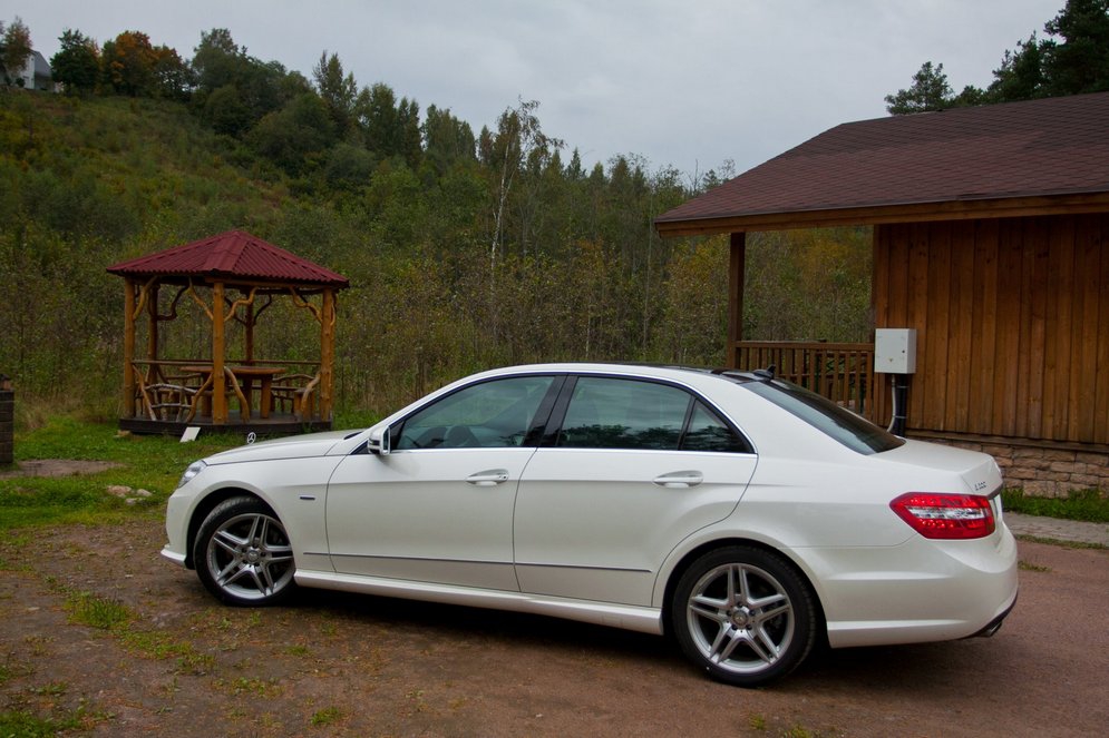 Проведя девять часов за рулём, и подъехав в начале второго часа ночи к дому, я выявил первый недостаток Мерседеса Е200 ценой под три миллиона рублей: оставлять дорогущую машину под окном было страшновато, а ехать на охраняемую парковку в двух километрах от дома, возвращаясь обратно пешком – лениво. Лень победила. Нет, ничего страшного с машиной за ночь не произошло, правда, я ложился спать с неспокойным сердцем, подскакивая к открытому окну при каждом подозрительном звуке. Несмотря на то, что E-class W212 продаётся в России с 2009 года и на петербургских дорогах встречается регулярно, на мою машину обращают внимание. Выигрышный белый цвет с чёрной крышей панорамного двухсекционного люка и «обвес» придворного ателье AMG делают своё черно-белое дело. Водитель остановившегося во встречной «пробке» Mercedes C класса W203, просверлив глазами дырку в моем белом «красавце», заметив мой взгляд, одобрительно кивнул. Понимает…